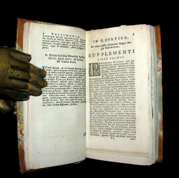 The book: Rare and nice 17th-century edition of Histories of Alexander the Great (Latin: Historiae Alexandri Magni) -- a biography of Alexander the Great written by Roman historian Quintus Curtius Rufus, dating to the 1st century. More fully title is Historiarum Alexandri Magni Macedonis Libri Qui Supersunt, "All the Books That Survive of the Histories of Alexander the Great of Macedon".
