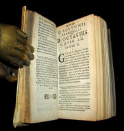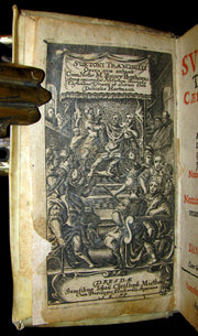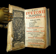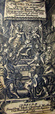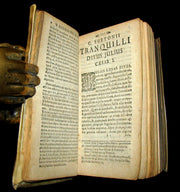The book : Rare 17th century edition of De Vita Caesarum—translated as The Life of the Caesars although a more common English title is The Lives of the Twelve Caesars or simply The Twelve Caesars— The Twelve Caesars, probably written in Hadrian's time, is a collective biography of the Roman Empire's first leaders, Julius Caesar, Augustus, Tiberius, Caligula, Claudius, Nero, Galba, Otho, Vitellius, Vespasian, Titus and Domitian. The book was dedicated to Suetonius' friend Gaius Septicius Clarus, a prefect of the Praetorian Guard in 119. The work tells the tale of each Caesar's life according to a set formula: the descriptions of appearance, omens, family history, quotes, and then a history are given in a consistent order for each Caesar.