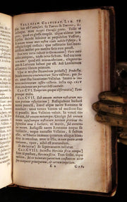 The book: Rare 17th-century edition of Paterculus' works including 'Historiae romanae' produced by Elzevier. Paterculus provided an account of Roman history from the end of the Trojan War to the death of Livia, the wife of Emperor Augustus.