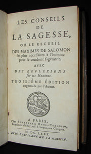 Title : Les Conseils de la Sagesse, ou le Recueil des Maximes de Salomon les plus nécessaires à l'homme pour se conduire sagement. Avec des reflexions sur ces maximes. Troisième édition augmentée par l'auteur.