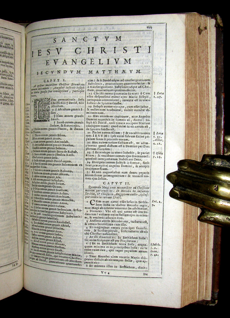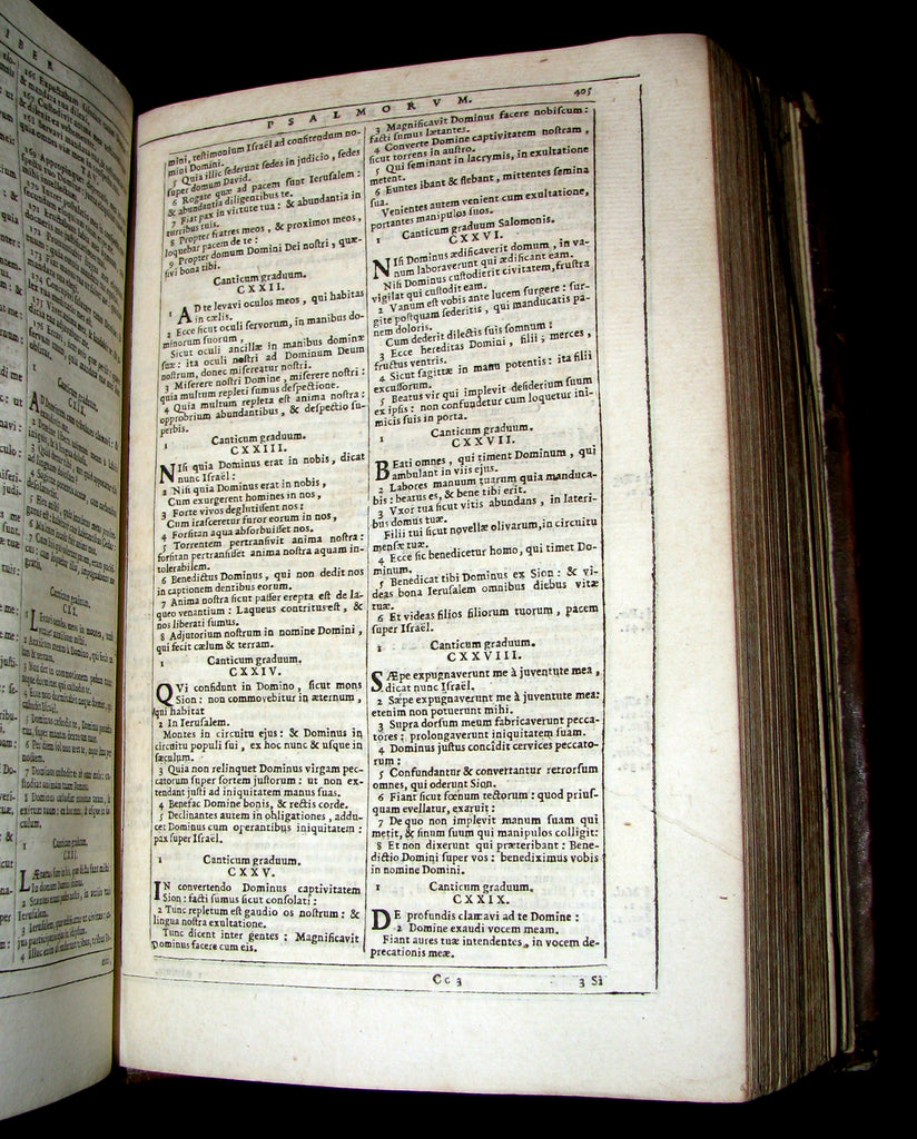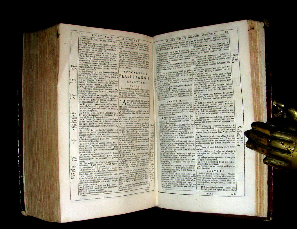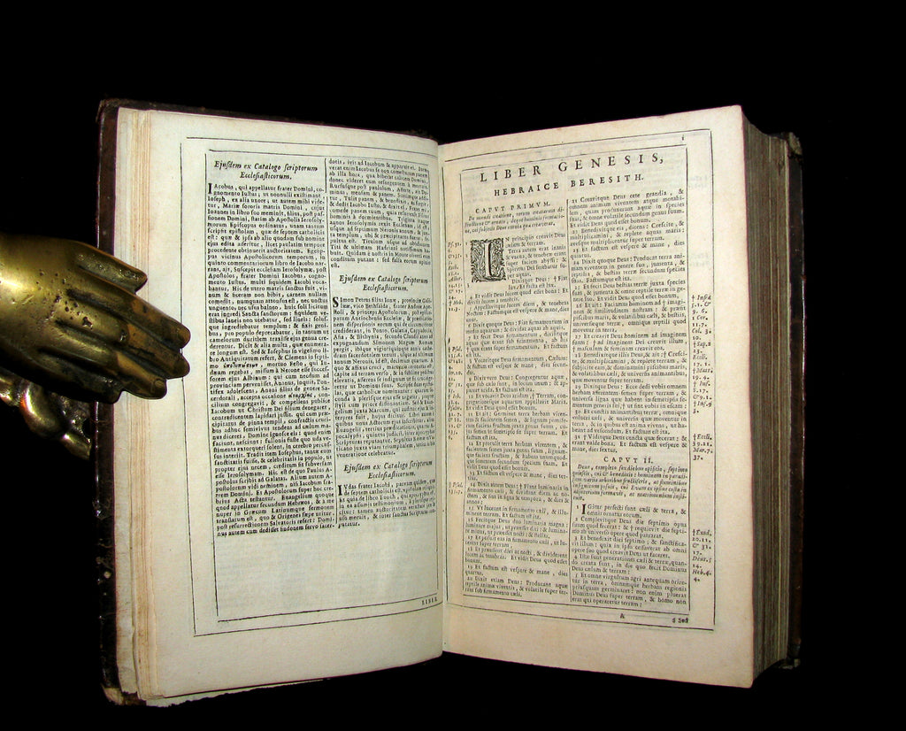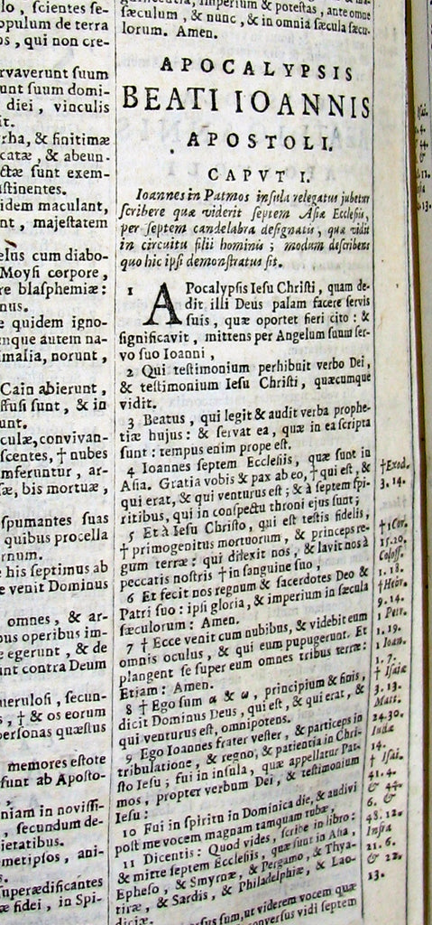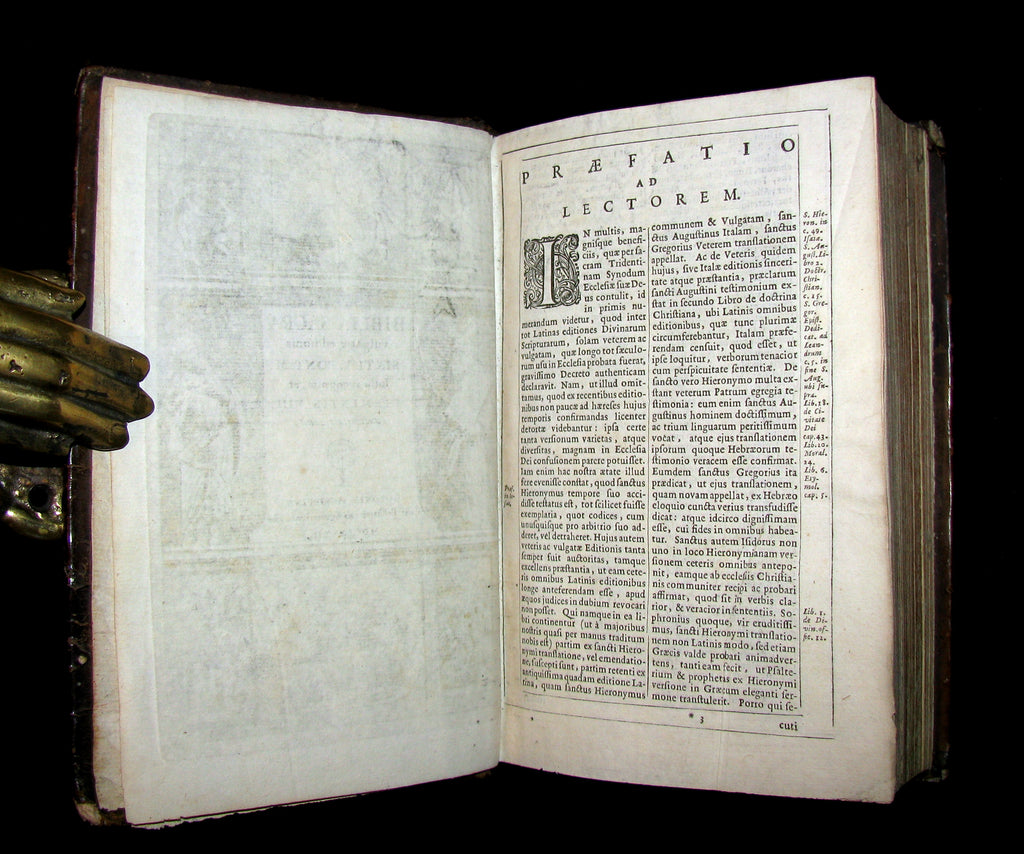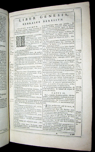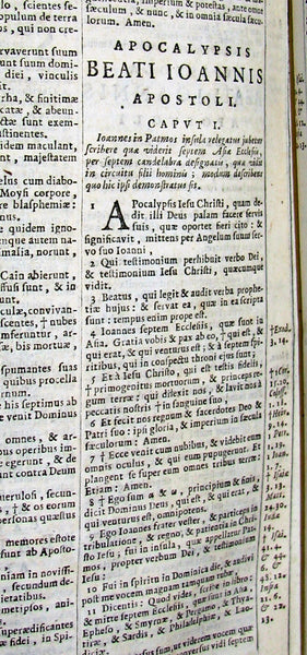 The book : An attractive, rare and uncommon 17th century Catholic Bible including Old and New Testament printed by the Amsterdam Blaeu Press with a fake Cologne imprint. Engr. title. Printed in 2 cols within ruled borders. Very nice!
