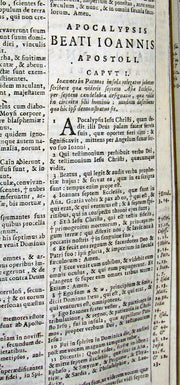 The book : An attractive, rare and uncommon 17th century Catholic Bible including Old and New Testament printed by the Amsterdam Blaeu Press with a fake Cologne imprint. Engr. title. Printed in 2 cols within ruled borders. Very nice!