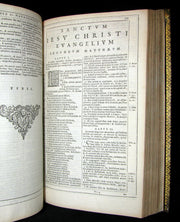 The book : A very rare and uncommon 17th century Catholic Bible ncluding Old and New Testament printed by the Amsterdam Blaeu Press with a fake Cologne imprint. Engr. title. Printed in 2cols within ruled borders. Very nice!