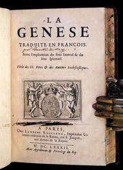 The book: A scarce 1682 book set of "La Genese," translated into French by Le Maistre de Sacy, with a detailed explanation of the literal and spiritual meanings, derived from the Saints' Fathers and ecclesiastical authors. This two-volume work, published by Lambert Roulland in Paris, offers a unique interpretation of the Bible's Book of Genesis, interweaving both Latin and French texts. It is a remarkable example of early biblical scholarship and translation.