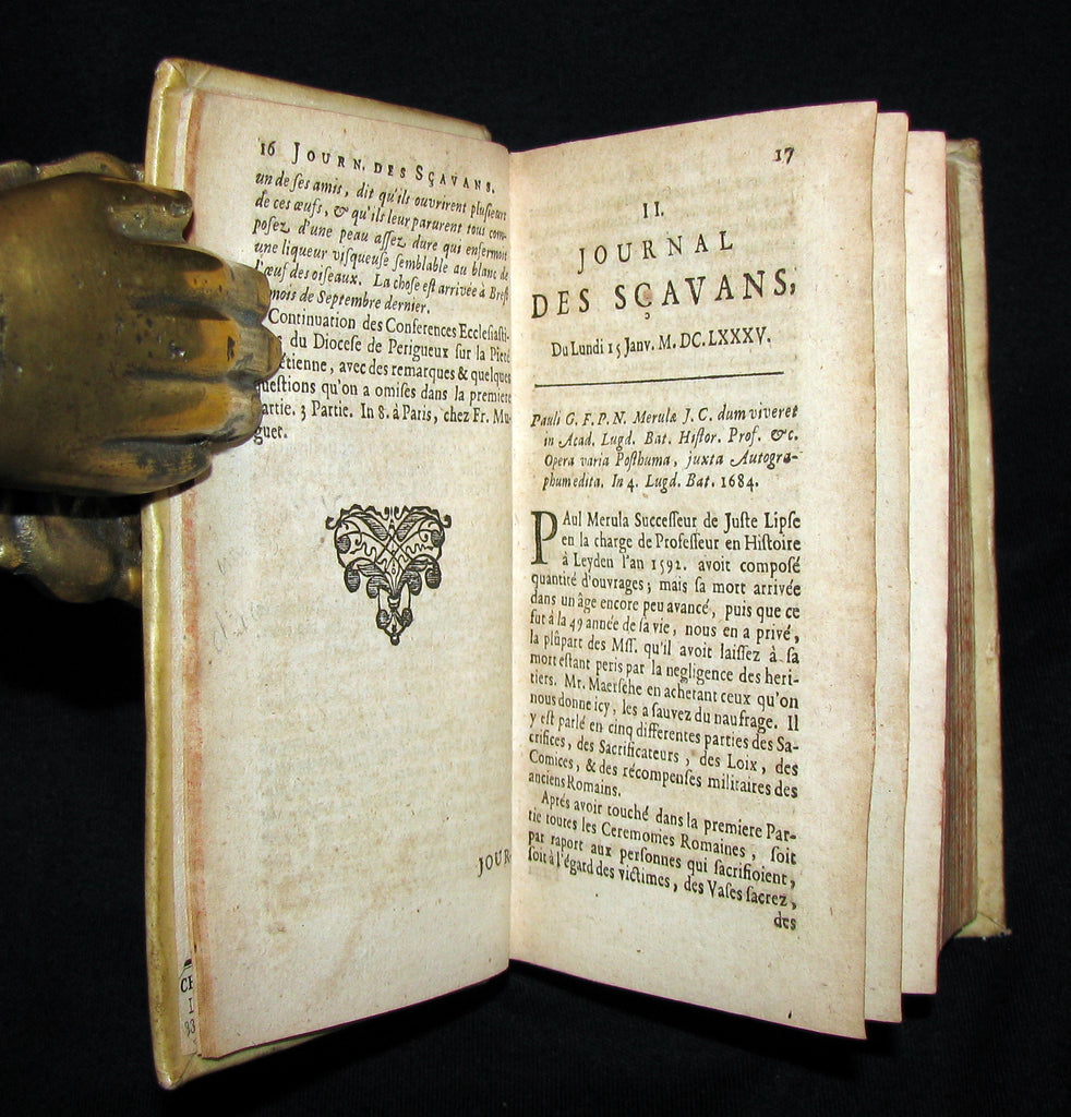 The book : Rare and attractive French 17th century edition of this Scientists' Journal for year 1685 including multiple subjects like lunar eclipse, ancient medals, etc,
