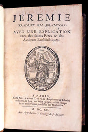 The book: This 1690 edition of "Jeremie et Baruch," translated into French by Louis-Isaac Lemaistre de Sacy, offers a meticulous and scholarly interpretation of the biblical books of Jeremiah and Baruch. It is part of a series of biblical texts translated by de Sacy, known for his work on the Bible that culminated in one of the most significant translations into French, the Bible de Port-Royal. This edition includes extensive explanations derived from the writings of the Church Fathers and notable ecclesiastical authors, providing readers with a deep theological insight into these prophetic texts.