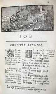 The book : Original 17th century French Latin edition of The Book of Job -- a book in the Ketuvim ("Writings") section of the Hebrew Bible (Tanakh), and the first poetic book in the Old Testament of the Christian Bible. Addressing the theme of God's justice in the face of human suffering – or more simply, "Why do the righteous suffer?" – it is a rich theological work setting out a variety of perspectives. It has been widely and often extravagantly praised for its literary qualities, with Alfred, Lord Tennyson calling it "the greatest poem of ancient and modern times".