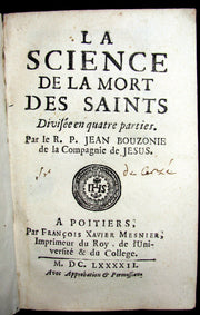 Title : La Science de la Mort des Saints. Divisée en quatre parties. Par le R. P. Jean Bouzonie de la Compagnie de JESUS.