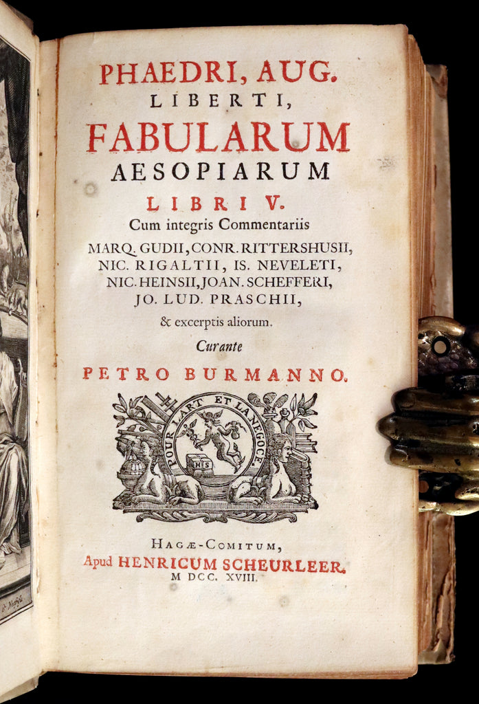1718 Rare Latin Vellum Book - Phaedrus & AESOP'S FABLES, Fabularum Aesopiarum Libri V.