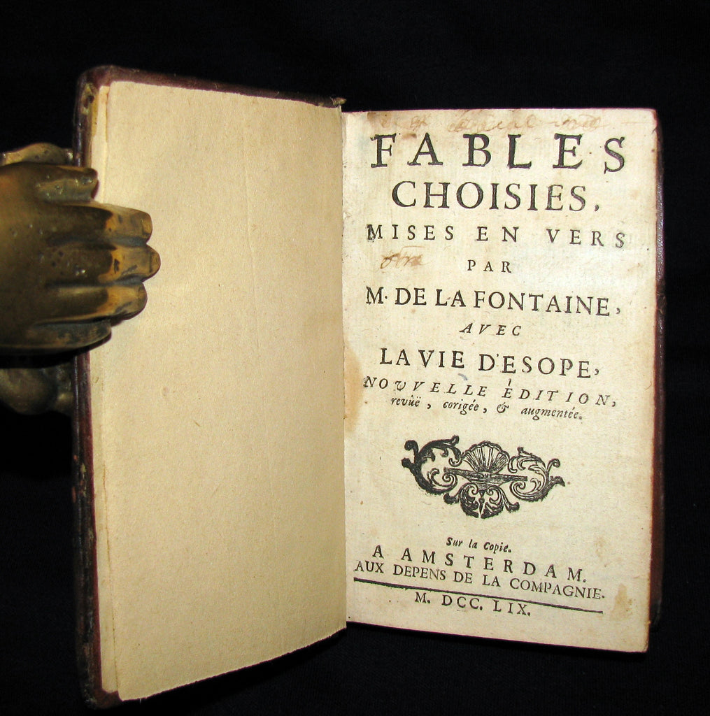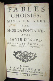 1759 Rare French Book - Fables choisies, mises en vers par monsieur De la Fontaine avec la vie d'Esope.