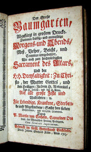 1767 Scarce Devotional German Book - Der Grosse Baumgarten by German Capuchin theologian Martin of Cochem. Illustrated.