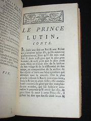 The book : Scarce complete edition of Mme d'Aulnoy's fairy tales... Contents : t. 1 Gracieuse et Percinet. Le Belle aux cheveux d'or. L'Oiseau Bleu. Le Prince Lutin. La Princesse printaniere. La Princesse Rosette. Le Rameau d'Or. L'Oranger et l'Abeille. LA bonne petite Souris. --t. 2 Dom Gabriel Ponce de Leon. Le Mouton. Finette Cendron. Fortuné. Babiole. Dom Ferdinand de Tolede. Le Nain jaune. Suite de Dom Fernand de Tolede. Serpentin vert.--t. 3. La princesse Carpillon. La Grenouille bienfaisante. La biche au bois. Le nouveau gentilhomme bourgeois. La chatte blanche. Belle-belle, ou le chevalier Fortuné.--t.4. Suite du Gentilhomme bourgeois. Le pigeon & la Colombe. Suite du Gentilhomme bourgeois. La princesse Belle-Etoile & le prince Chéri. Suite du Gentilhomme bourgeois. Le prince Marcassin. Suite du Gentilhomme bourgeois. Le dauphin. Conclusion du Gentilhomme bourgeois.