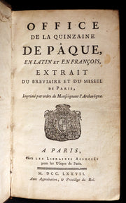Title: OFFICE DE LA QUINZAINE DE PAQUE, EN LATIN ET EN FRANCOIS, EXTRAIT DU BREVIAIRE ET DU MISSEL DE PARIS. Imprimé par ordre de Monseigneur l'Archevéque.