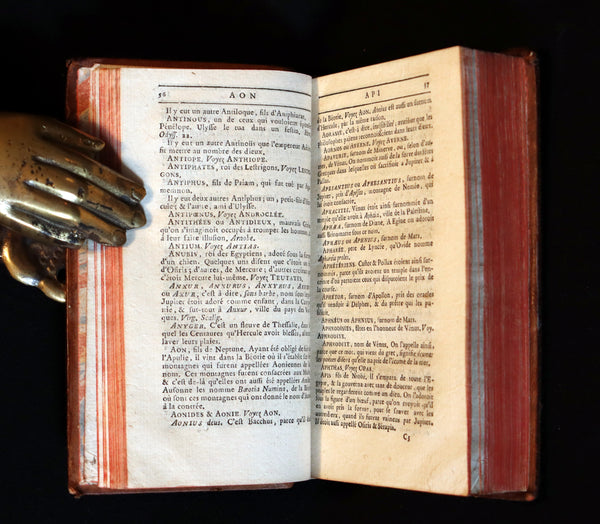 The book: Rare and attractive French 18th-century edition of Chompre Dictionnaire abrege de la Fable - His Dictionnaire abrégé de la Fable, first published in 1727, was translated into many languages and reprinted many times until the middle of the nineteenth century. "Here we have a man named Chompre, wrote his contemporary Baron Grimm, which possesses for the instruction of youth a very rare and recognized talent. He saw that the most perfect books we have from antiquity repelled young people by their uselessness, obscurities or things beyond their reach in them. He is responsible for the care to extract all that can attract, entertain or educate young people"
