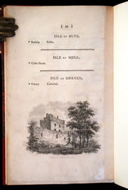 The book: A List of the Principal Castles and Monasteries in Great Britain (1798) by James Moore, Esq., is a scarce first edition that offers a comprehensive catalog of the country's historical architecture. This guide serves as a valuable resource for scholars and enthusiasts of British history, architecture, and heritage. The binding by Sangorski and Sutcliffe, renowned for their exquisite craftsmanship in bookbinding, adds significant value and beauty to this volume. The upper edge gilt and the preservation of the book's content in very good condition, despite some toning and marginal notes, highlight the care taken in its conservation. The vignettes on the title and last page provide a visual enhancement to Moore's detailed listings, making this edition a rare and desirable item for collectors of British historical and architectural references.