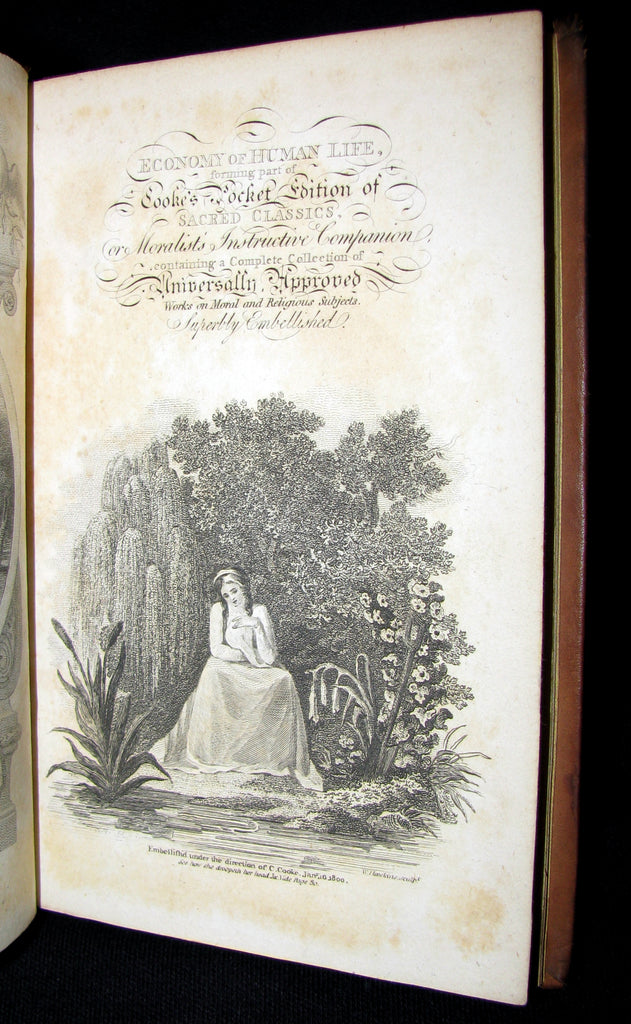 The book : Rare and attractive Cooke edition of The Oeconomy of Human Life which appeared in 1750. It is a collection of moral precepts attributed to ancient authors in India and China, set out in a King James Version style of English attributed to an anonymous translator.