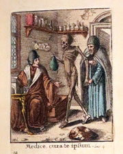 The illustrator: Hans Holbein the Younger (c. 1497[6] – between 7 October and 29 November 1543) was a German painter and printmaker who worked in a Northern Renaissance style, and is considered one of the greatest portraitists of the 16th century. He also produced religious art, satire, and Reformation propaganda, and he made a significant contribution to the history of book design. He is called "the Younger" to distinguish him from his father Hans Holbein the Elder, an accomplished painter of the Late Gothic school. His Dance of Death (1523–26) refashions the late-medieval allegory of the Danse Macabre as a reformist satire. Holbein's series of woodcuts shows the figure of "Death" in many disguises, confronting individuals from all walks of life. None escape Death's skeleton clutches, even the pious.