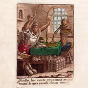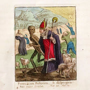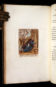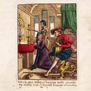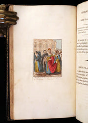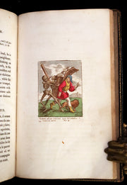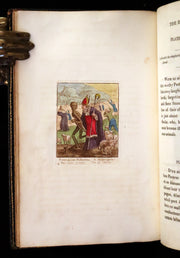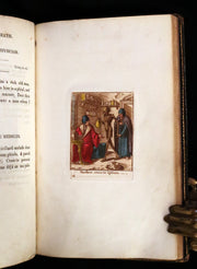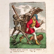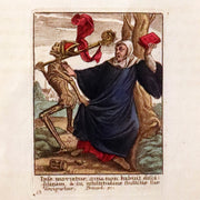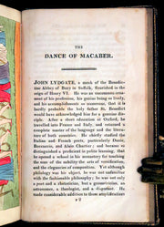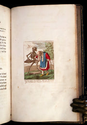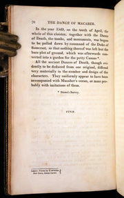 The book: Rare and attractive 1816 color edition of The Danse Macabre (from the French language), also called the Dance of Death, -- an artistic genre of allegory of the Late Middle Ages on the universality of death: no matter one's station in life, the Danse Macabre unites all. The Danse Macabre consists of the dead or a personification of death summoning representatives from all walks of life to dance along to the grave, typically with a pope, emperor, king, child, and laborer. It was produced as memento mori, to remind people of the fragility of their lives and how vain were the glories of earthly life. Its origins are postulated from illustrated sermon texts; the earliest recorded visual scheme was a now-lost mural at Holy Innocents' Cemetery in Paris dating from 1424 to 1425.