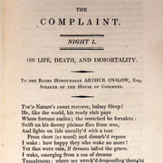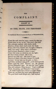 The book: Attractive early-18th-century edition of Edward Young famous "Complaint: or, Night-Thoughts on Life, Death, & Immortality", better known simply as Night-Thoughts, a long poem by Young published in nine parts (or "nights") between 1742 and 1745.