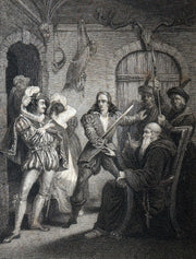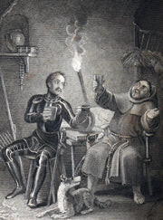 The illustrators: This edition features engravings after Thomas Stothard, Henry Howard, and Charles Heath, among the foremost illustrators of early 19th-century England. Their finely detailed plates, executed in steel and copper, capture the moral and dramatic force of Scott’s novels. The frontispieces — such as Ivanhoe and the Clerk of Copmanhurst Carousing and The Trial of Rebecca — stand as classic examples of Regency-era book art, harmonizing perfectly with the author’s romantic vision.