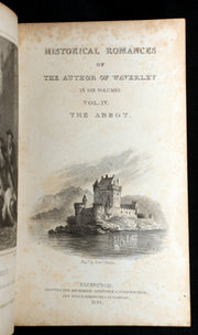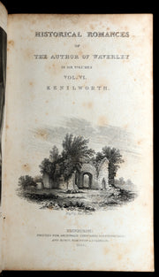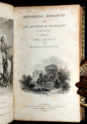 Binding: Attractive and very good handsomely bound in contemporary full black polished calf, with elaborate gilt tooling to the spines and covers. The spines richly decorated in gilt floral compartments, with raised bands and gilt-lettered title panels reading Scott’s Historical Romances. Gilt dentelles and gilt edges (hinges fine, overall slightly worn and scuffed - as shown) under a protective removable mylar cover. Overall, a remarkably well-preserved and elegant set.