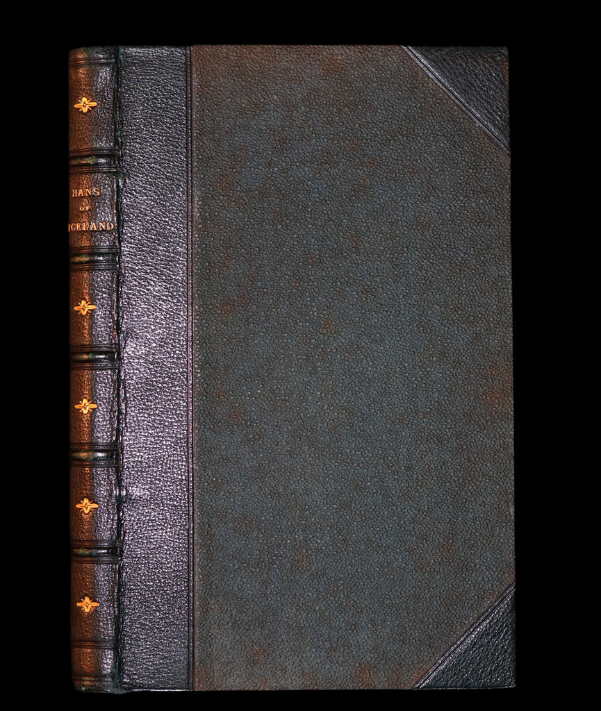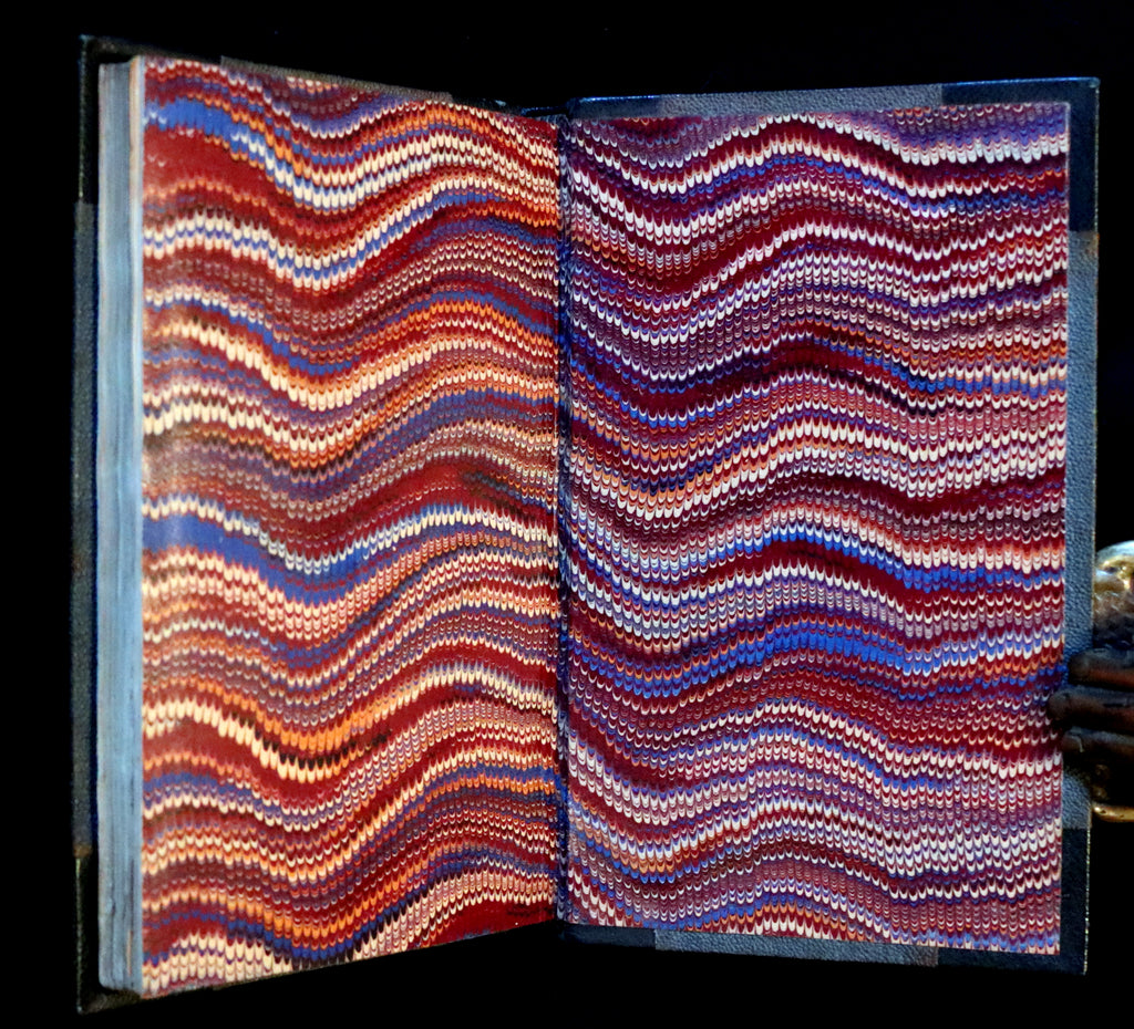Binding: Attractive and very good half green morocco leather binding, gilt lettering, 5 raised bands, upper edge gilt, marbled endpapers (hinges fine, overall slightly worn and scuffed - as shown) under a protective removable mylar cover.