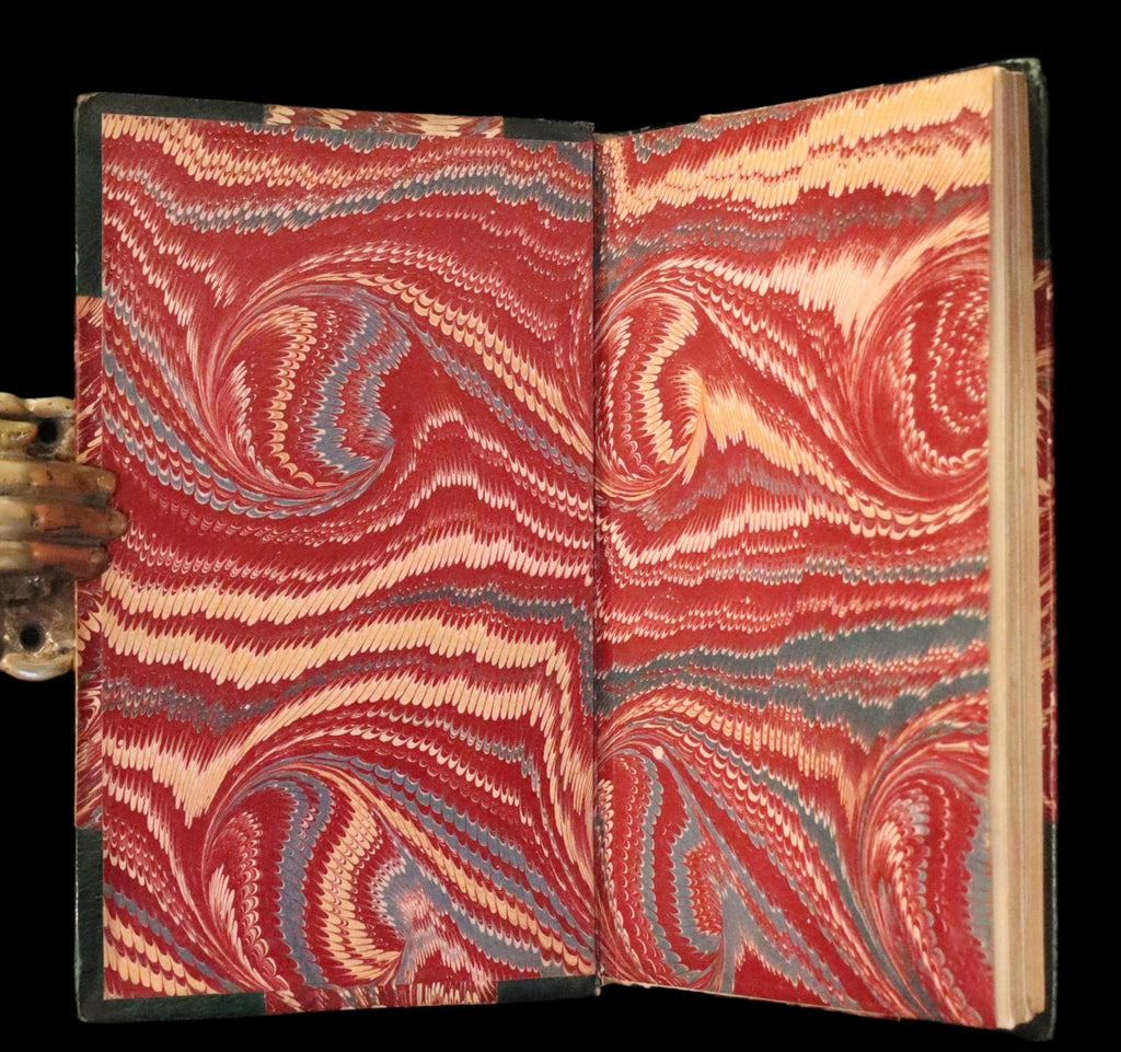 Binding: Attractive and very good half-green morocco leather binding, gilt lettering, 5 raised bands, upper edge gilt, marbled endpapers (hinges fine, overall slightly worn and scuffed - as shown) under a protective removable mylar cover.