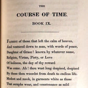 The book: Very attractive edition of The Course of Time -- a ten-book poem in blank verse, first published in 1827. It was the last published and most famous work of Scottish poet Robert Pollok. The first edition of the poem, an ambitious Miltonic epic of the doom of mankind, sold 12,000 copies, and by its fourth edition, it had sold 78,000 copies and become well-known even in North America.
