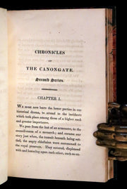 The books: Attractive and rare first edition, first issue of this set from Sir Walter Scott, comprises the second series of "Chronicles of the Canongate". The centerpiece, "The Fair Maid of Perth", is set in 14th-century Scotland and revolves around the love story of Catherine Glover (the Fair Maid) and Henry Smith, a burgher. The tale intertwines romance, chivalry, and political intrigue during the reign of Robert III. Scott's intricate narrative, combined with his profound understanding of Scottish history and culture, makes this work an essential addition for collectors and enthusiasts of classic literature.