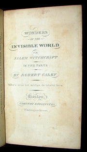 1828 Scarce Book - SALEM WITCHCRAFT - Wonders of the Invisible World by Robert Calef