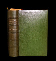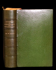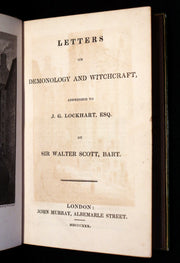 The book: Very attractive and Scarce first edition with the complete 12 engraved plates in THREE STATES by George Cruikshank of Letters on Demonology and Witchcraft in a beautiful and attractive binding. -- In ill health following a stroke, Sir Walter Scott wrote Letters on Demonology and Witchcraft at the behest of his son-in-law, J. G. Lockhart, who worked for a publishing firm. Letters was written when educated society believed itself in enlightened times due to advances in modern science. Letters, however, revealed that all social classes still held beliefs in ghosts, witches, warlocks, fairies, elves, diabolism, the occult, and even werewolves. Sourcing from prior sixteenth- and seventeenth-century treatises on demonology along with contemporary accounts from England, Europe, and North America (Cotton Mather's Magnalia Christi, for one), Scott's discourses on the psychological, religious, physical, and preternatural explanations for these beliefs are essential reading for acolytes of the dark and macabre; the letters dealing with witch hunts, trials (Letters Eight and Nine), and torture are morbidly compelling. Scott was neither fully pro-rational modernity nor totally anti-superstitious past, as his skepticism of one of the "new" sciences (skullology, as he calls it) is made clear in a private letter to a friend. Thus, Letters is both a personal and intellectual examination of conflicting belief systems, when popular science began to challenge superstition in earnest.