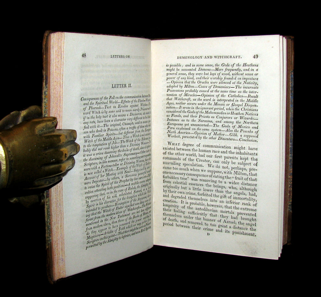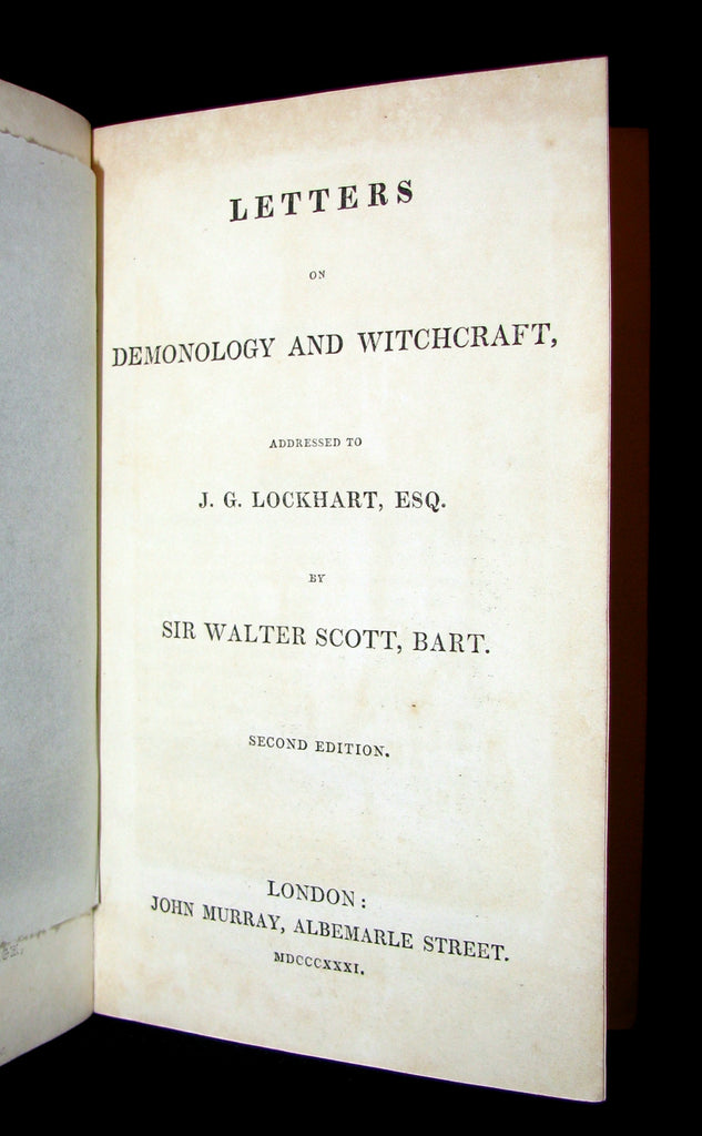 The book : Attractive and rare second edition of Letters on Demonology and Witchcraft in a beautiful and attractive binding. -- In ill health following a stroke, Sir Walter Scott wrote Letters on Demonology and Witchcraft at the behest of his son-in-law, J. G. Lockhart, who worked for a publishing firm. Letters was written when educated society believed itself in enlightened times due to advances in modern science. Letters, however, revealed that all social classes still held beliefs in ghosts, witches, warlocks, fairies, elves, diabolism, the occult, and even werewolves. Sourcing from prior sixteenth- and seventeenth-century treatises on demonology along with contemporary accounts from England, Europe, and North America (Cotton Mather's Magnalia Christi, for one), Scott's discourses on the psychological, religious, physical, and preternatural explanations for these beliefs are essential reading for acolytes of the dark and macabre; the letters dealing with witch hunts, trials (Letters Eight and Nine), and torture are morbidly compelling. Scott was neither fully pro-rational modernity nor totally anti-superstitious past, as his skepticism of one of the "new" sciences (skullology, as he calls it) is made clear in a private letter to a friend. Thus, Letters is both a personal and intellectual examination of conflicting belief systems, when popular science began to challenge superstition in earnest.
