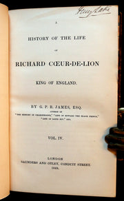 The Books: Beautiful First edition of this complete 4 volumes set in an attractive binding.The History of the Life of Richard Coeur-De-Lion King of England by George Payne Rainsford James.