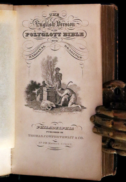 1843 Beautiful Binding - The Polyglott BIBLE, Containing the Old and New Testaments. (Bound with) 1837 Psalms of David, in metre.