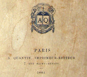 Publisher : Paris, Edité par A. Quantin, Imprimeur-Editeur, 1884. First Edition.