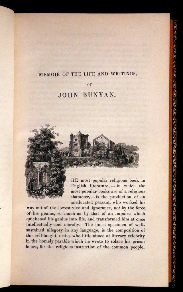 The book: Rare and very attractive early Victorian edition of The Pilgrim's Progress -- a 1678 Christian allegory written by John Bunyan. It is regarded as one of the most significant works of religious English literature, has been translated into more than 200 languages, and has never been out of print. It has also been cited as the first novel written in English.