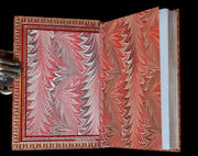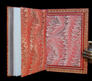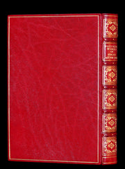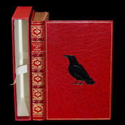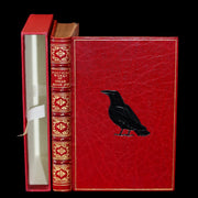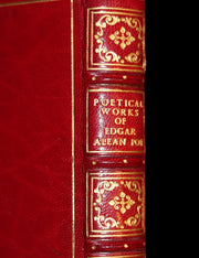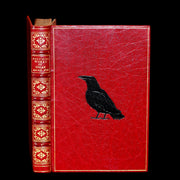 red morocco leather, the covers tooled in gilt with a rule border and at the center of the front cover a large block with the black raven. The spine is divided into six panels with gilt-tooled bands and compartments, lettered in the second, beautiful tooled turn-ins with a gilt roll, marbled endpapers, all edges gilt. In a very good, NEAR FINE, custom cloth case. An incredibly beautiful binding for Edgar Allan Poe's Poems!