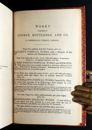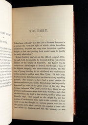 Binding: Attractive and very good binding, finely bound in full red morocco, covers and spine richly gilt in an elaborate mid-Victorian decorative panel design. Spine with raised bands, compartments densely gilt, and gilt lettering (Southey’s Poems). Board edges and turn-ins decorated in gilt. All edges gilt (hinges fine, overall slightly worn and scuffed - as shown) under a protective removable mylar cover. Binder’s ticket of Leighton, Son & Hodge, London, to rear pastedown.
