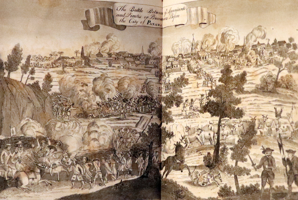 Illustration: Complete with the 12 illustrations, the folding illustration of the battle of Panama and the scarce folding Map of the South Sea & Coasts of America (Map has been neatly repaired with clear archival tape at the back).