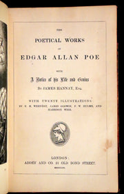 The book: This scarce first UK edition of The Poetical Works of Edgar Allan Poe is a highly collectible piece, presenting Poe's celebrated poetry with Victorian-era illustrations. This volume includes an introductory biographical essay by James Hannay, offering insight into Poe's life, character, and unique literary contributions.