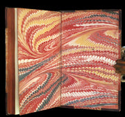 Binding: Attractive and good to very good half-marocco leather binding with marbled boards. The spine is richly decorated with gilt floral motifs, raised bands, and title in gilt (hinges fine, overall slightly worn and scuffed - as shown) under a protective removable mylar cover. All edges are gilt.