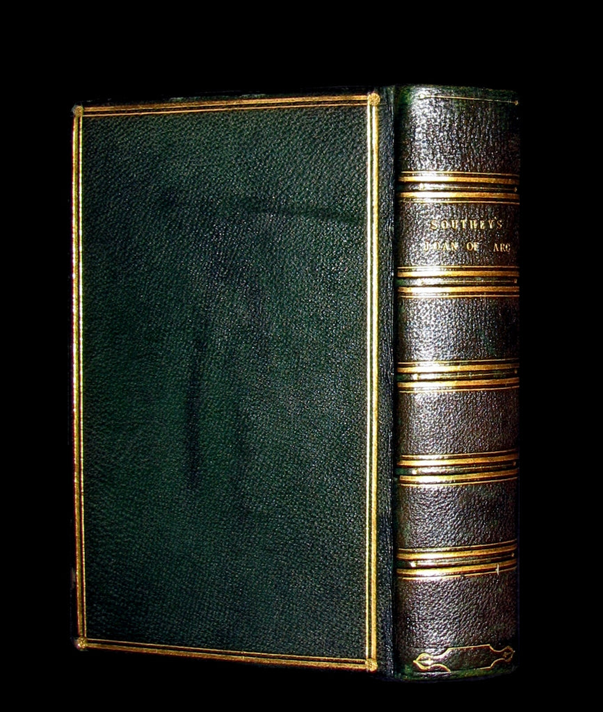 The book: Rare and attractive illustrated edition of Joan of Arc -- an epic poem composed by Robert Southey. The idea for the story came from a discussion between Southey and Grosvenor Bedford when Southey realized that the story would be suitable for an epic. The subject further appealed to Southey because the events of the French Revolution were concurrent with the writing of the poem and would serve as a parallel to current events. Eventually, Samuel Taylor Coleridge helped rewrite parts of the poem. Later editions removed Coleridge's additions along with other changes.