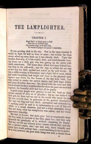 The book: Scarce First British Edition of The Lamplighter -- The Lamplighter is a sentimental novel written by Maria Susanna Cummins and published in 1854, and a best-selling novel of its era. A female Victorian Bildungsroman, The Lamplighter tells the story of Gertrude Flint, an abandoned and mistreated orphan rescued at the age of eight by Trueman Flint, a lamplighter, from her abusive guardian, Nan Grant. Gertrude is lovingly raised and taught virtues and religious faith. She becomes a moralistic woman. In adulthood, she is rewarded for her long-suffering with marriage to a childhood friend...