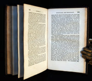 The book: Rare early American edition of Letters on Demonology and Witchcraft in a nice quarter leather binding. -- In ill health following a stroke, Sir Walter Scott wrote Letters on Demonology and Witchcraft at the behest of his son-in-law, J. G. Lockhart, who worked for a publishing firm. Letters was written when educated society believed itself in enlightened times due to advances in modern science. Letters, however, revealed that all social classes still held beliefs in ghosts, witches, warlocks, fairies, elves, diabolism, the occult, and even werewolves. Sourcing from prior sixteenth- and seventeenth-century treatises on demonology along with contemporary accounts from England, Europe, and North America (Cotton Mather's Magnalia Christi, for one), Scott's discourses on the psychological, religious, physical, and preternatural explanations for these beliefs are essential reading for acolytes of the dark and macabre; the letters dealing with witch hunts, trials (Letters Eight and Nine), and torture are morbidly compelling. Scott was neither fully pro-rational modernity nor totally anti-superstitious past, as his skepticism of one of the "new" sciences (skullology, as he calls it) is made clear in a private letter to a friend. Thus, Letters is both a personal and intellectual examination of conflicting belief systems, when popular science began to challenge superstition in earnest.