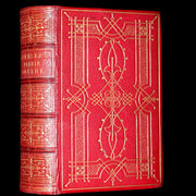 Binding: Attractive and very good full leather binding, finely bound in red morocco leather with unusual and decorative boards with intricate gilt geometric tooling by Leighton Son and Hodge (hinges fine, overall slightly scuffed - as shown) under a protective removable mylar cover. All edges gilt.