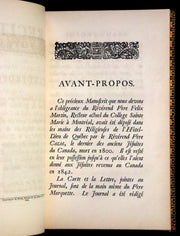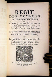 Title: Récit des Voyages et des Découvertes du R. Père Jacques Marquette de la Compagnie de Jésus, en l'année 1673 et aux suivantes; La Continuation de ses Voyages par le R. P. Claude Allouez; et Le Journal Autographe du P. Marquette en 1674 & 1675. (With) Narre du Voyage faict pour la Mission des Abnaquis . . . par le Pere Gabriel Dreuillette.