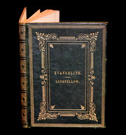 The book: Rare and attractive edition of Evangeline, A Tale of Acadie -- an epic poem by the American poet Henry Wadsworth Longfellow, written in English and published in 1847. The poem follows an Acadian girl named Evangeline and her search for her lost love Gabriel, set during the time of the Expulsion of the Acadians.