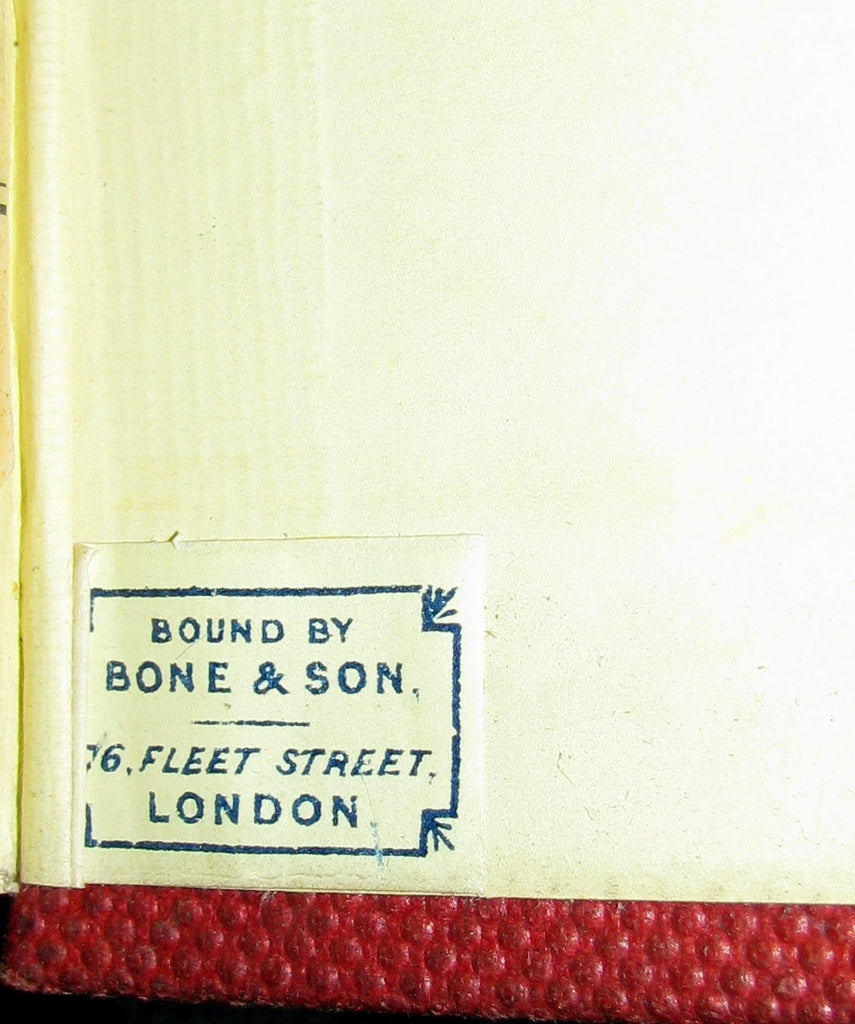 Binding : Attractive and very good original gilt decorated red cloth binding executed by Bone & Son in London (hinges fine, overall slightly worn and scuffed- as shown) under a protective removable mylar cover.