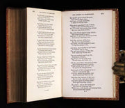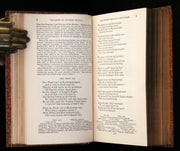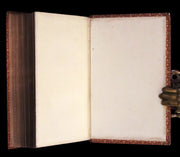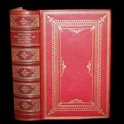 Binding: Attractive and near fine beautiful red Morocco leather binding with intricate gold tooling on both the spine and covers. Raised bands on the spine (hinges fine, overall slightly scuffed - as shown) under a protective removable mylar cover. All edges are gilt.