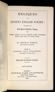 1859 Rare Victorian Book - Reliques of Ancient English Poetry and Old Heroic Ballads collected by Thomas Percy. Illustrated.
